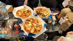 夜にお店でピザパしたり、