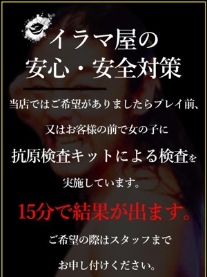 初めまして。 店主の竹田です。 前任の伊良町男(イラマチオ)から引き継いだ新店主です。 昭和が終わり、平成も終わり、時代は常に変化していきます。 私共も時代のニーズに合わせて行かなければなりません… が、いつの時代も「イラマチオ」は変わる事が無いのです。 本日、私店主竹田が出勤中は「店主・特別割り」が可能です。 ぜひ、御指名は私店主竹田をご指名下さい。 どうぞごゆっくり、私がオススメする本物の「イラマチオ」を身をもって体感して下さい。