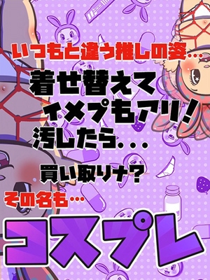 ・いつもと違う推しの姿… ・着せ替えてイメプを楽しむもヨキ! ・レンタルと買取の2種類で楽しめ☆ ・希望者にはおまけ付き! その名も… 【コスプレ】 遂に来たぜ!コスプレイベント! 私服の推しも良いけれど… いつもと違う推しの姿に、 更に勃起しちゃうんじゃないってハナシ!? レンタルと買取の2種類用意してるから、 ご希望の遊び方に応じて選ぶベシ! ちな希望者には… 「伊達メガネ」も付けちゃうZE☆ 「レンタルメニュー」 着たままプレイ可能! 返却必須なので、 汚しちゃダメだゾ 「体操服&ブルマ」¥2000 「スク水」¥2000 「メイド」¥2000 「ナース」¥2000 「セーラー服」¥2000 「買取メニュー」 同じく着たままプレイはもちろん、 こちらは汚そうがぶっかけようがOKデス☆ もちろん持ち帰ってもヨキ! むしろ持ち帰って貰えると助かるwww 「体操服&ブルマ」¥6000 「スク水」¥6000 「メイド」¥6000 「ナース」¥6000 「セーラー服」¥6000 受付時に 「コスプレ」 とお伝え下され☆